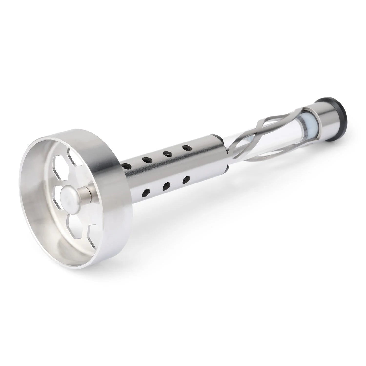Materials: 100% stainless steel inside and out, quartz glass tube with sealed mother water, stainless steel strainer, POM-C lid with seal and integrated carabiner, silicone gaskets approved for contact with food