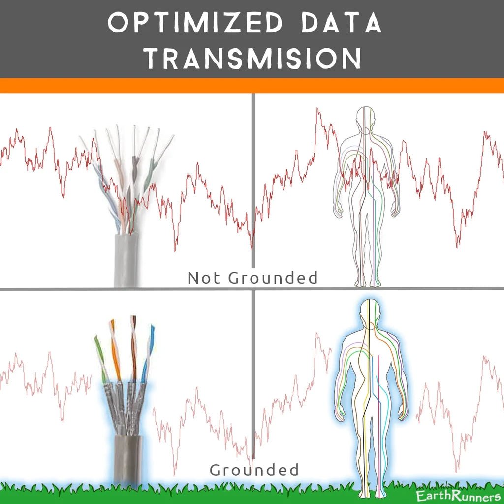 • We live in an environment characterized by WiFi, mobile networks, Bluetooth and electrical appliances - all of this creates electromagnetic noise. Grounding reduces measurable voltages in the body.