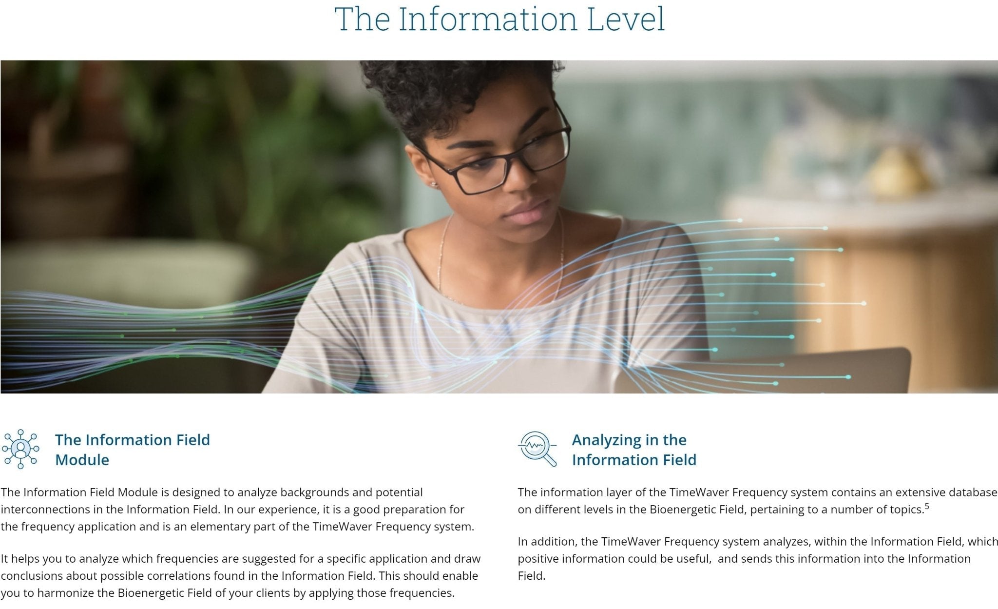 TimeWaver Frequency is a frequency-based system that combines modern technology with deep insight into the body's bioenergetic systems. The main purpose of the system is to promote health and well-being by harmonizing the body's energy field, which in many traditions is referred to as life energy (chi or qi) or prana and in today's terminology; electromagnetic energy. This is done through the use of frequency-specific programs designed to support the body's natural processes, including cellular communication, energy production and healing. The TimeWaver system uses microcurrents and frequencies selected to restore balance in the body's bioenergetic field.