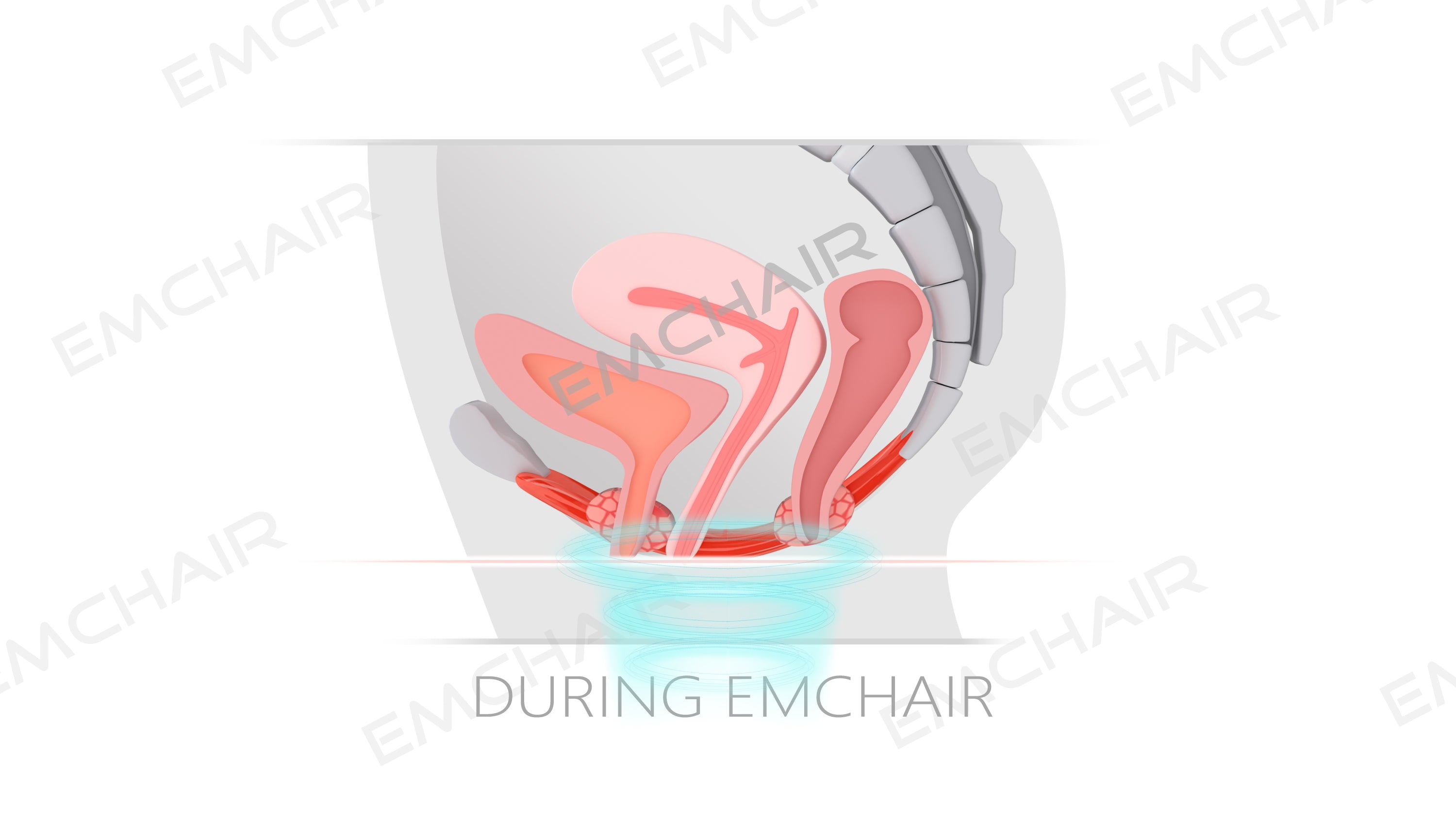 Treatment with EM Chair should be avoided in case of pregnancy, pacemaker or implanted electronic devices, large metal prostheses in the pelvic area, serious cardiovascular conditions, uncontrolled epilepsy, active thrombosis or transplantation. Clinical assessment is always recommended before treatment.