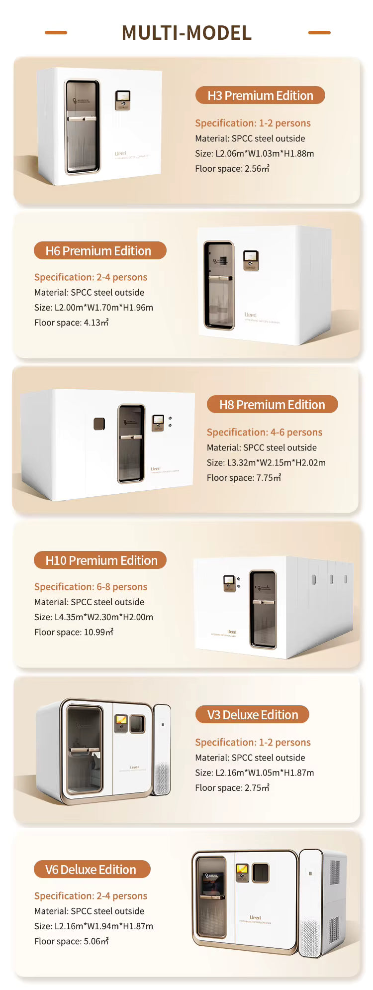 Uno Vitas Ueerl H6 Luxury Version hard-shell hyperbaric oxygen chamber for 2-4 people