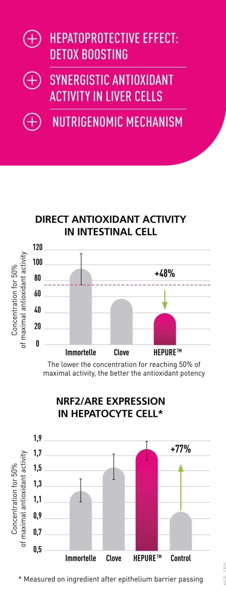 - 400 mg Hepure™, a mixture of immortelle and clove extracts.