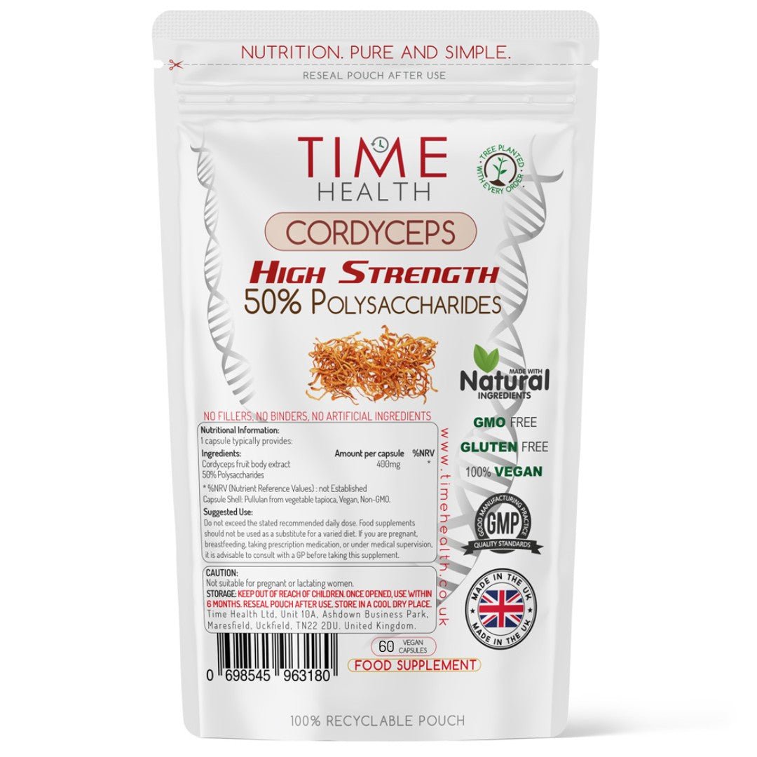 This product is manufactured in the UK under strict GMP standards. Time Health prioritizes sustainable and environmentally friendly solutions, including the use of pullulan-based capsules that are biodegradable and free of unnecessary additives.
