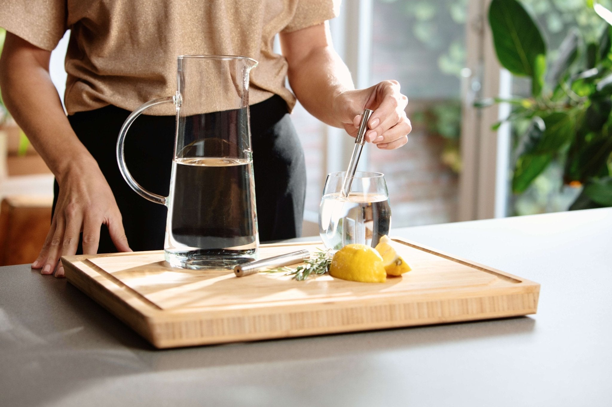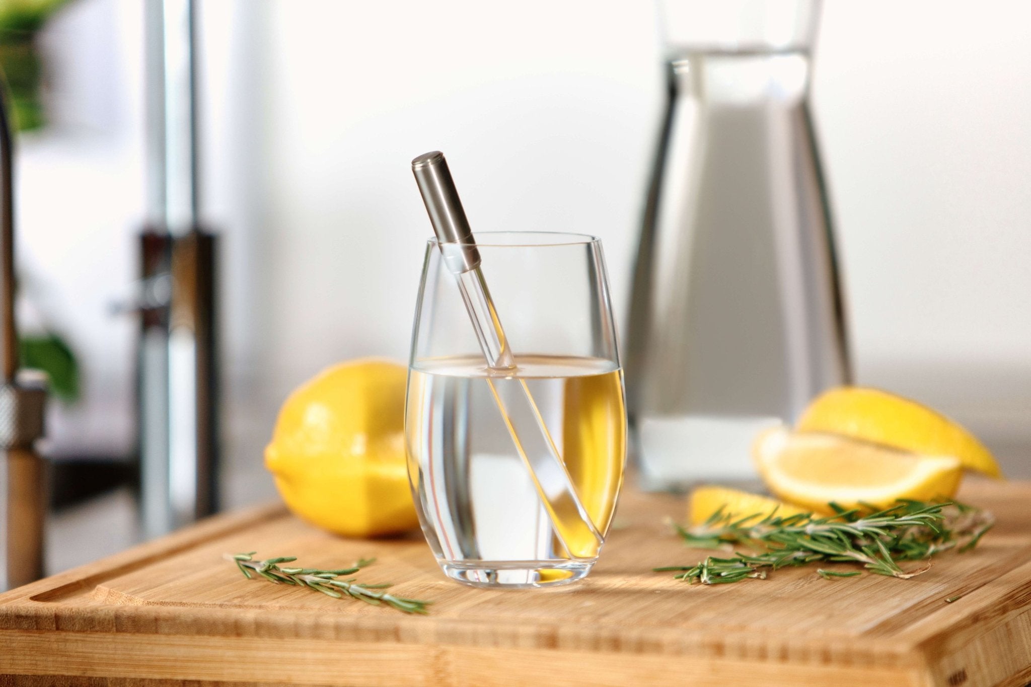 • Füllen Sie ein Glas oder eine Karaffe mit kaltem Wasser oder Wasser mit Raumtemperatur aus einer sicheren Quelle.