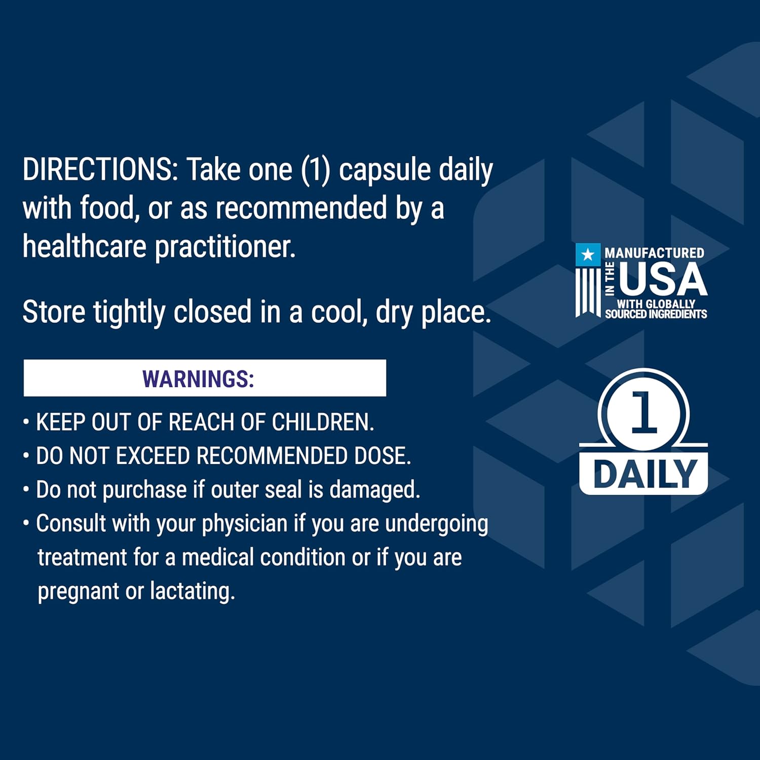 Tomar 1 cápsula al día con la comida. No exceda la dosis recomendada. Almacenar fresco, seco y fuera del alcance de los niños.