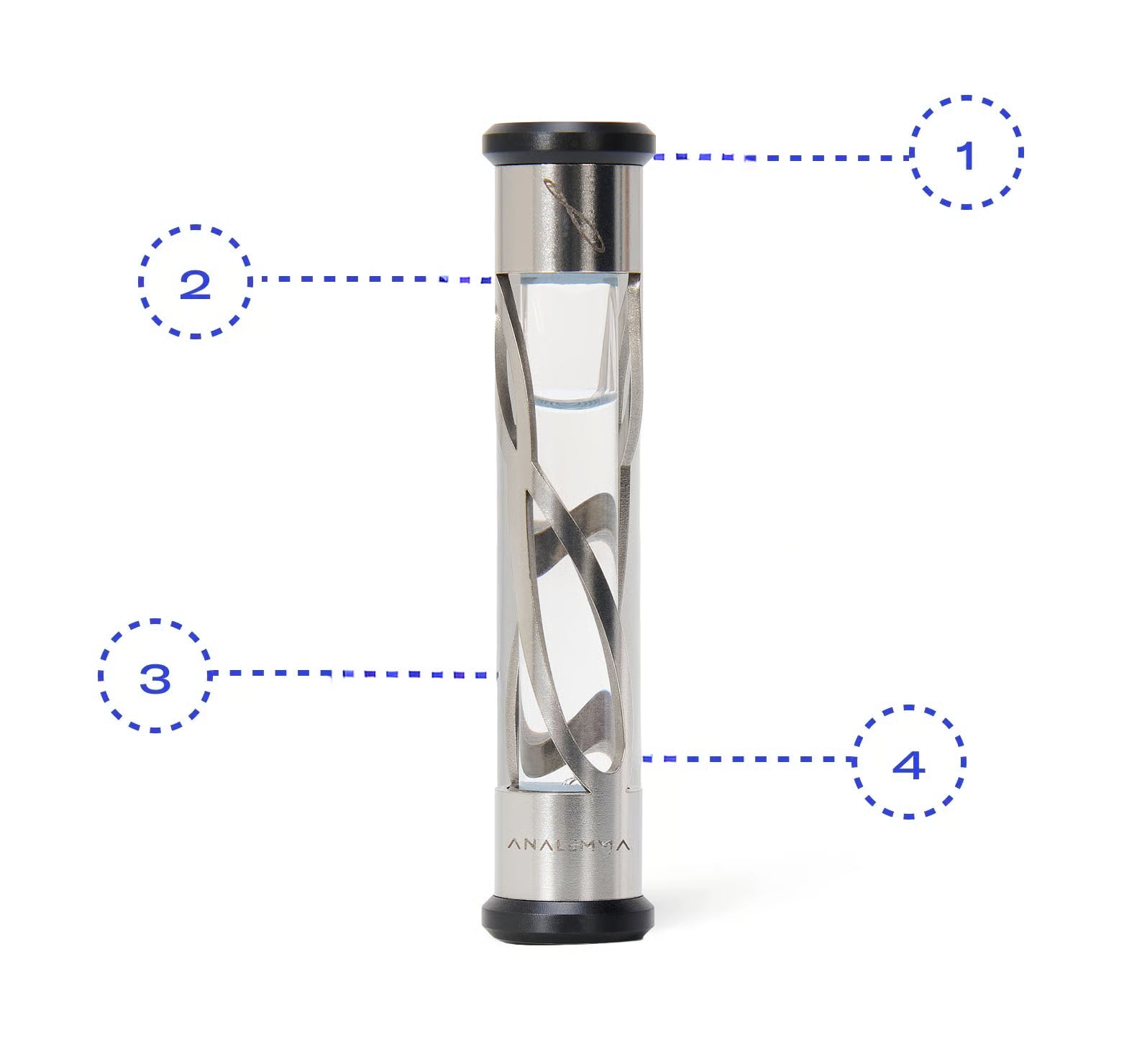Aǹalemma Inlay es la versión doméstica de la tecnología Aǹalemma, diseñada para quienes desean tener agua constante disponible en todo momento, sin tocar ni hacer nada adicional. La incrustación consta de un tubo de vidrio de cuarzo lleno de "agua madre" de espectro completo, encapsulado en una jaula protectora de acero inoxidable con tapas de POM-C que absorben los golpes. Simplemente colóquelo en su jarra de agua, termo de vidrio, tanque de filtro o recipiente de agua de mesa. En cuestión de minutos, la estructura organizada y coherente se transfiere a toda el agua circundante, una y otra vez, día tras día. El resultado es un agua que se siente más suave, más clara y más "viva", mientras que varios estudios independientes sobre el agua de Aǹalemma muestran efectos interesantes sobre el nivel de ATP, el microbioma intestinal, la edad biológica y la coherencia de las ondas cerebrales cuando se consume a diario. Para usted, significa una forma sencilla de mejorar la calidad de toda el agua que bebe en casa, en el trabajo o en el entorno clínico.