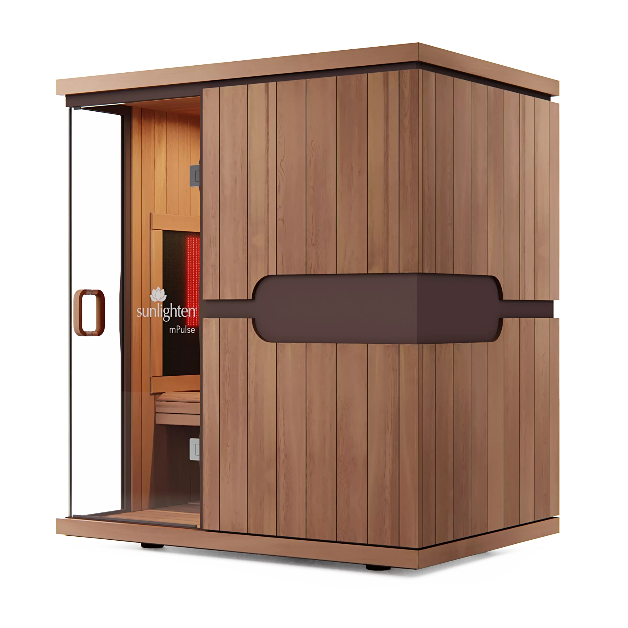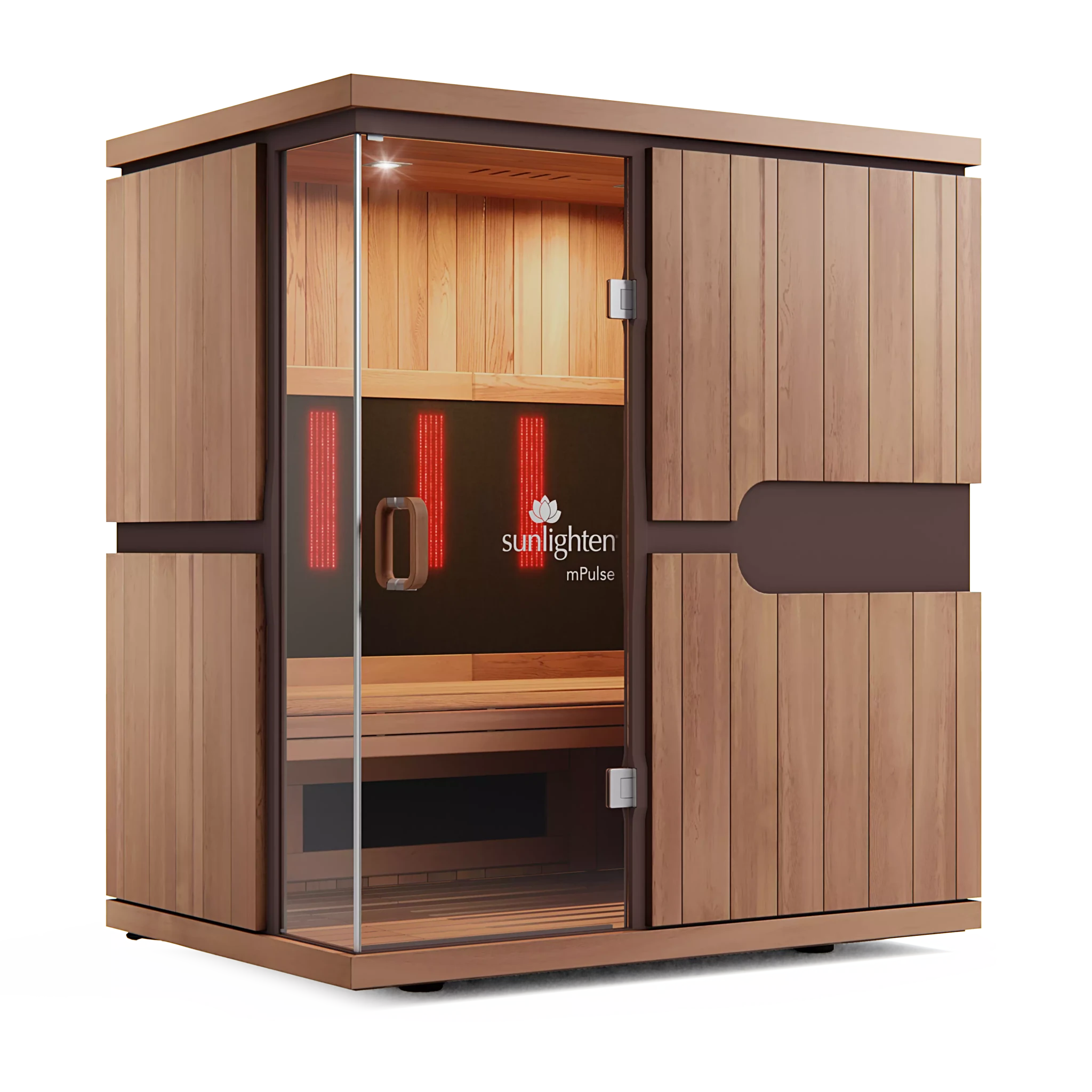 Les saunas infrarouges mPulse « 3 en 1 » sont une série de saunas basée sur la recherche. Le rayonnement infrarouge est inoffensif et constitue la partie du rayonnement solaire la plus bénéfique pour la santé. La série Sunlighten mPulse est l'un des rares saunas au monde à émettre un traitement thermique infrarouge à spectre complet bénéfique pour la santé. Le Solokabon3 -in-1® breveté est le seul élément de sauna qui émet les trois longueurs d'onde infrarouges et peut être adapté à chaque utilisateur.