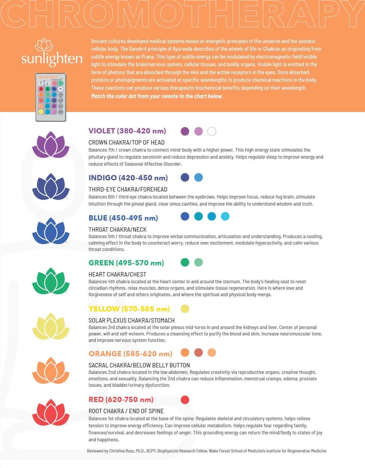 Chromothérapie pour l'équilibre mental: Chaque sauna Sunlighten est livré avec un chromothérapie pour promouvoir le bien-être mental. À l'aide des couleurs du spectre de la lumière visible, vous pouvez obtenir un meilleur équilibre et un meilleur calme, car différentes couleurs affectent les centres énergétiques du corps (chakras) et favorisent l'harmonie.
