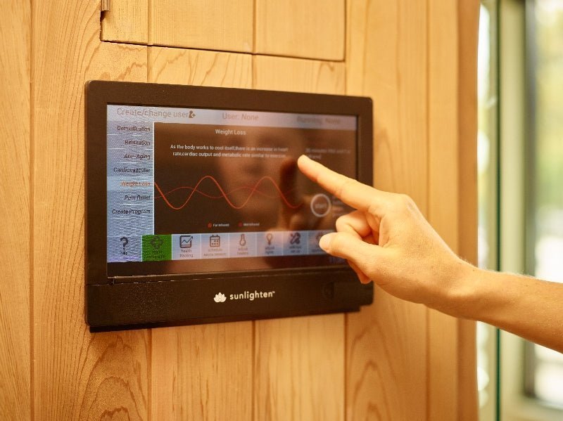 Contrôle intelligent et intégration mobile: Avec le Panneau de configuration Android ou L'application Sunlighten vous pouvez planifier de futures séances de sauna, régler la température et suivre vos programmes de santé. Vous pouvez également obtenir des mises à jour logicielles continues via WiFi, vous donnant accès aux dernières fonctionnalités et applications.