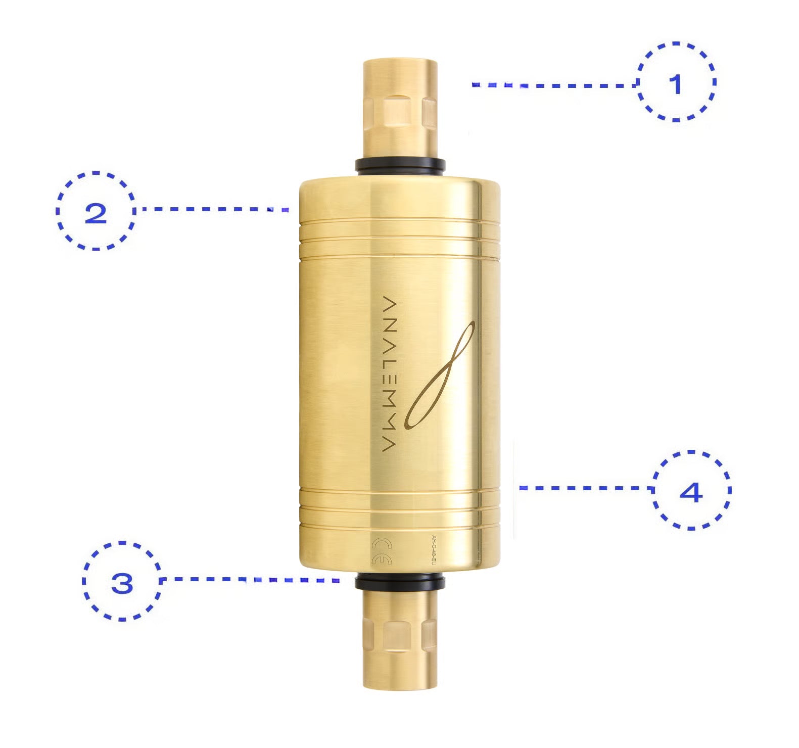 One of the great strengths of Aǹalemma for the whole house is that it does not filter using cartridges, does not add chemicals and does not require electricity. You don't have to remember to change filters, throw away plastic cartridges and have yet another "box" that is buzzing on electricity - the device is completely passive and mechanically robust.