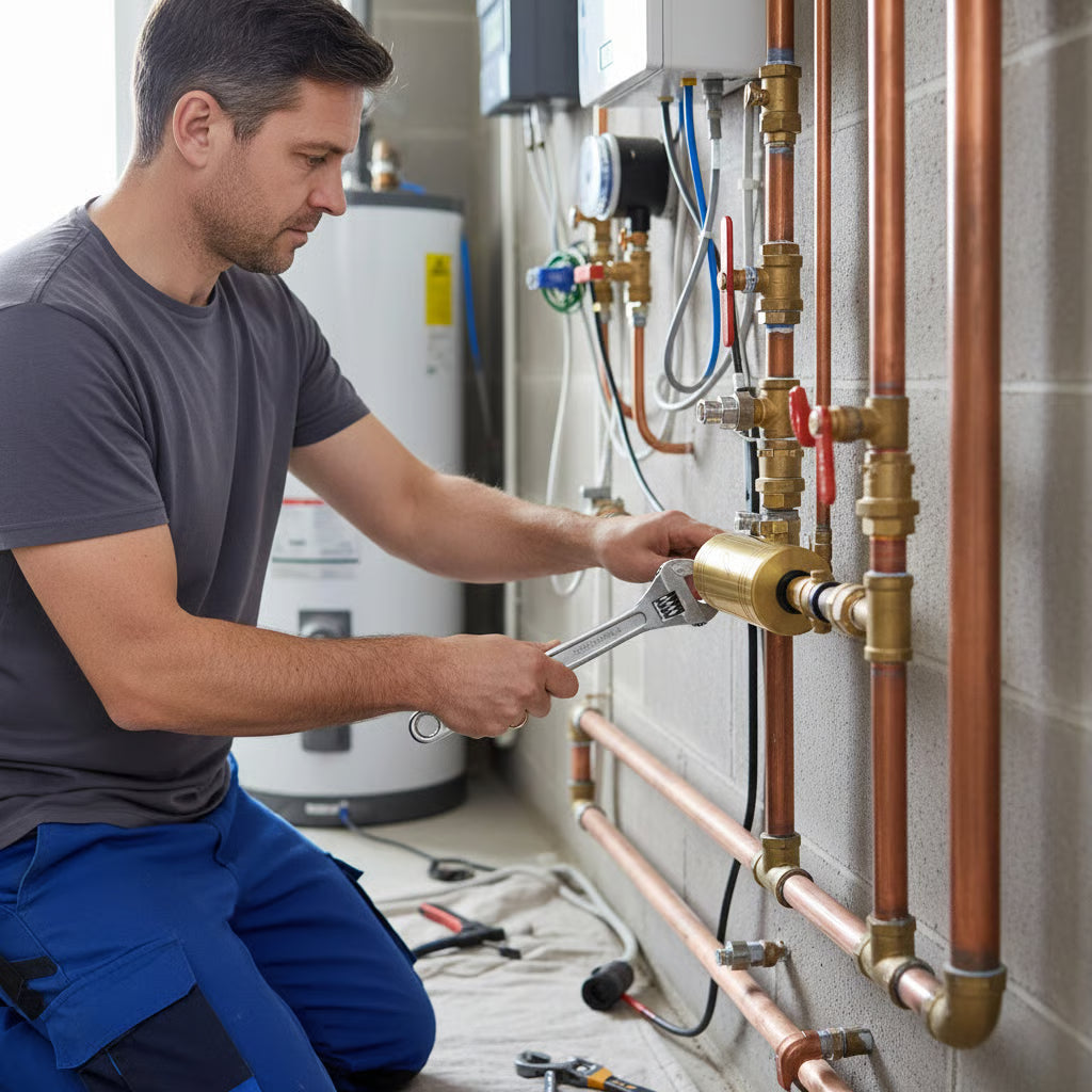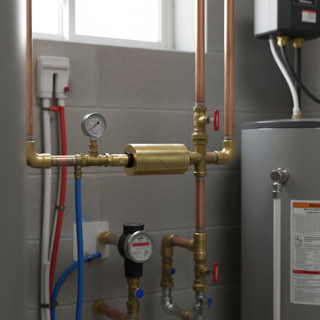 Aǹalemma for the whole house must always be installed by a certified plumber. The unit is normally mounted on the main water line after any mechanical/chemical filter (so that the purified water is structured), but before branches to the rest of the house. The plumber assesses the best location and methodology (press connection, compression or other solutions) based on the existing facility. For non-standard dimensions, reducers are used to enter and exit the unit's 28 mm connections.