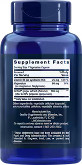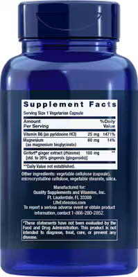 Ingredients: Ginfort® ginger extract, magnesium bisglycinate, vitamin B6, vegetable cellulose (capsule), microcrystalline cellulose, vegetable stearate, silica