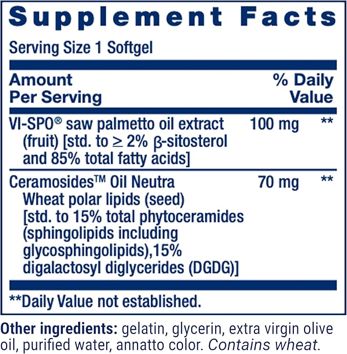 Ceramosides™ wheat polar lipids (seed), standardized to 15% total phytoceramides and 15% digalactosyl diglycerides (DGDG): 70 mg