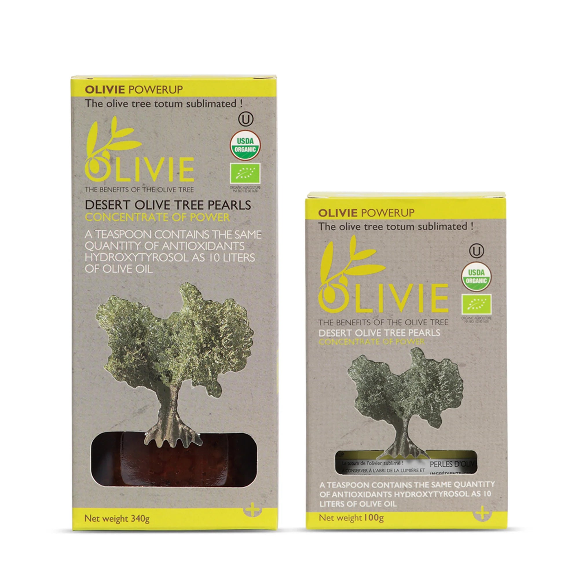 PowerUp is delivered as small, soft pearls of olive pulp and oil with a slightly grainy texture. They consist of pressed olive leaves, young leaves, olive fruit and extra virgin olive oil from desert olive trees.
