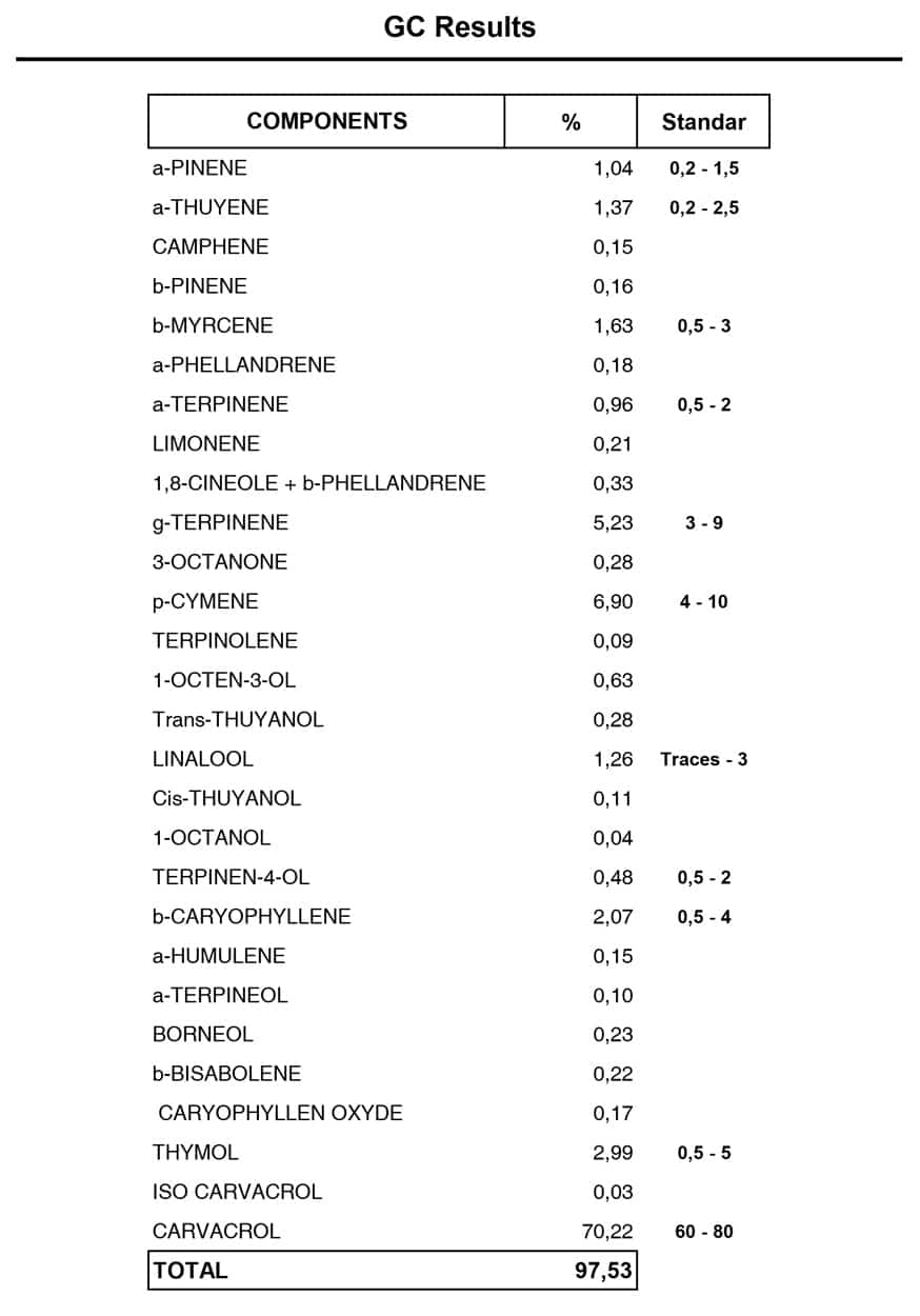 • Stöd för en frisk tarmmikrobiom och normal matsmältningskomfort genom innehållet av fenolerna carvacrol och tymol (naturliga antimikrobiella och antioxidantföreningar).