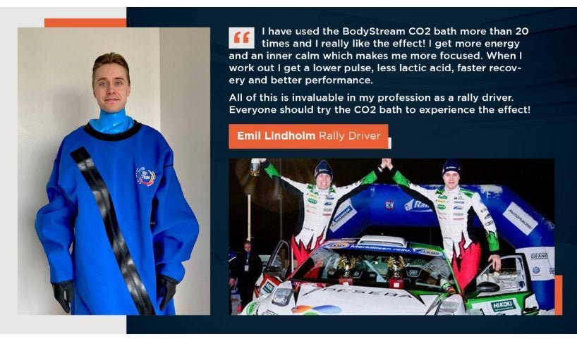 BodyStream användarupplevelser Alexandra Kolam, 43, rapporterade betydande humörförbättring och smärtlindring i knäet, vilket gjorde det möjligt för henne att delta i dagliga aktiviteter. Ulla Knape, 76, fann lindring från långvarig fibromyalgismärta och förbättrad cirkulation. Atleten Chay Genoway använde CO₂-dräkten för återhämtning och avkoppling efter intensiv träning. Andra användare rapporterade förbättrad hudhälsa, minskad svullnad, snabbare sårläkning och bättre energinivåer.