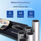 • Oxyair 2.0 i rostfritt stål – toppmodellen som använder Q345R tryckkärl i stål med maximal hållbarhet och högsta säkerhet. Lämplig för professionell användning på kliniker, medicinska institutioner, sportanläggningar, lyxiga spa och exklusiva hem.